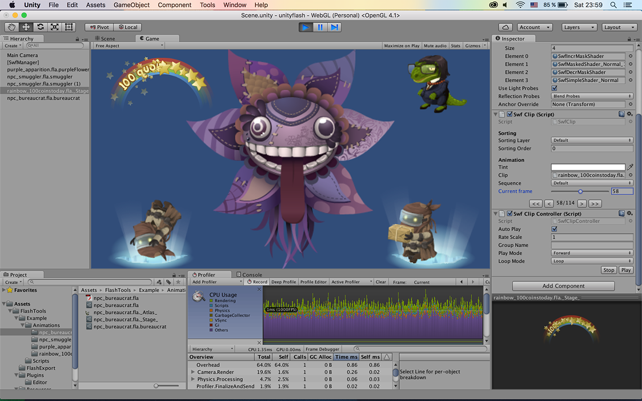 - Samples use "Creative Commons CC0 1.0 Universal License" animations from Glitch game